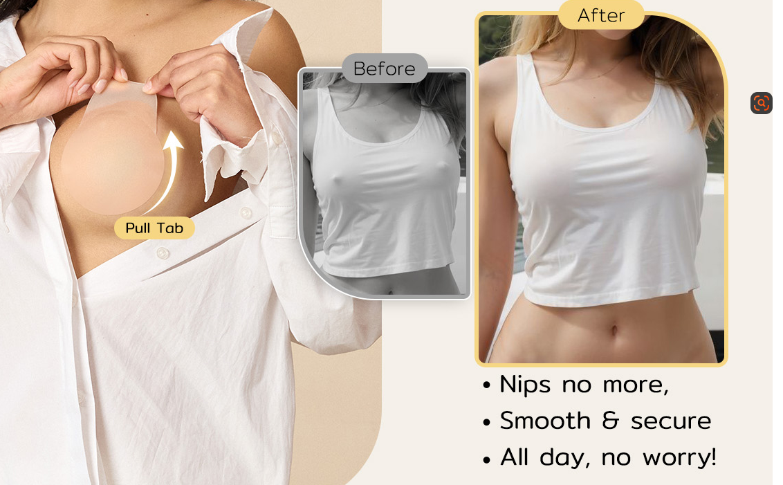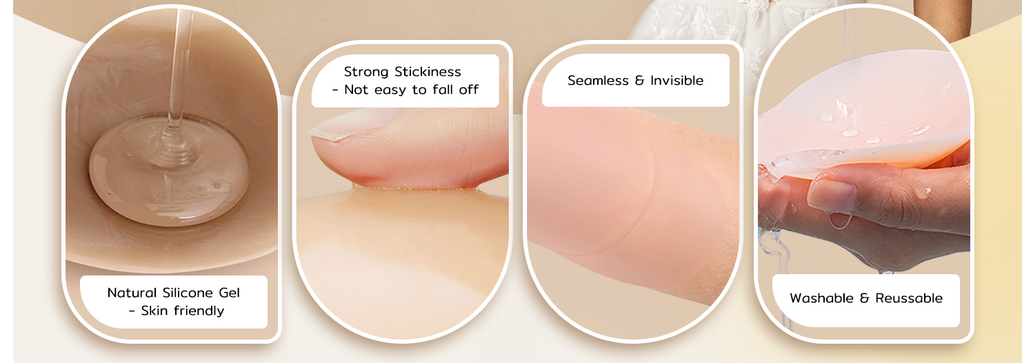 Nipple Stickers, Reusable Adhesive Silicone Latex Bra Women's Nipple Patches with Travel Case