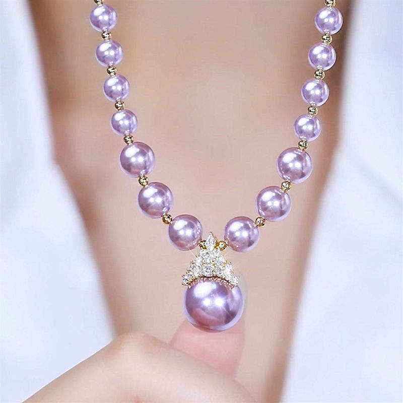 Purple Crown Imitation Pearl Necklace Senior Sense Autumn and Winter New Purple Gas East Clavicle Chain Pearl Necklace