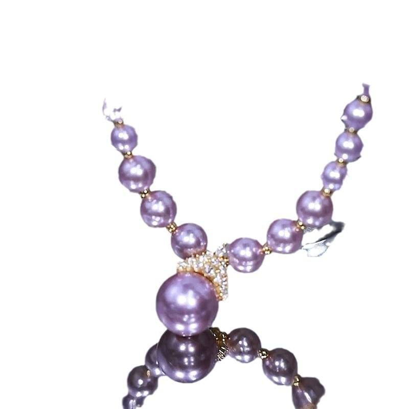 Purple Crown Imitation Pearl Necklace Senior Sense Autumn and Winter New Purple Gas East Clavicle Chain Pearl Necklace
